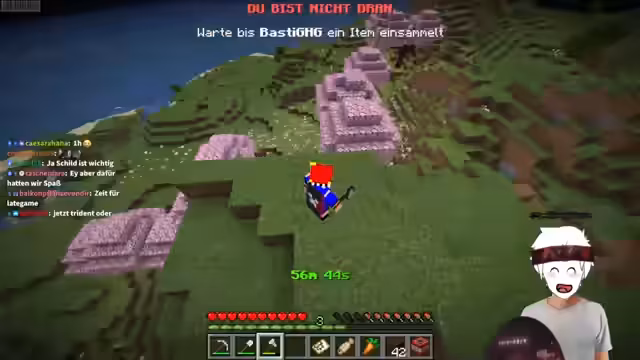 00:23:28Der Streamer beginnt eine Minecraft-Challenge mit Basti. Aufgrund eines technischen Fehlers starten die beiden Spieler auf unterschiedlichen Welten, wodurch ein direktes Töten nicht möglich ist. Stattdessen müssen sie durch das Sammeln bestimmter Items kommunizieren. Die erste Aufgabe besteht darin, den Spruce Lock abzubauen und sich zu einem Schatzschiff zu begeben. Die Kommunikation geschieht nonverbal, indem beide Spieler identische Items aus Vorratskisten sammeln und ihr Inventar im Blick behalten.