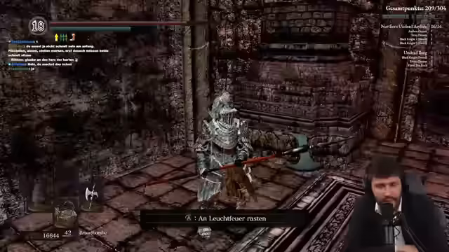 00:03:24Der Stream beginnt mit einer Begrüßung der Community und einem Rückblick auf den ersten Tag des Soulkeepers Run Events. Der Streamer drückt seine Anspannung und Vorfreude auf den zweiten Tag aus, besonders da ab jetzt schwierigere Bosskämpfe und Gebiete bevorstehen. Das Ziel ist es, über 156 Punkte zu erreichen und wichtige Orte wie Neulondo, Anor Londo und die Katakomben zu besuchen.