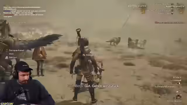 00:19:14Der Streamer erstellt seinen Charakter im Spiel, indem er sich an Bob Ross orientiert und diesen Rob Boss nennt, und wählt für seine Katze den Namen Happy Little Accident. Er startet das Spiel und beginnt mit dem Tutorial. Er findet den deutschen Dub geil und kommentiert die Grafik des Spiels. Er entdeckt eine Handgranate und freut sich auf Monster Hunter Wilds. Der Streamer fragt den Chat nach Meinungen zur Katze und deren Namen. Er passt das Aussehen seines Charakters und der Katze an. Der Streamer startet das Tutorial und kommentiert die Grafik und den deutschen Dub. Er rettet ein Kind im Spiel und findet die Stimme der Katze nervig. Er kämpft gegen ein Monster und stellt die Stimme der Katze auf Maximum. Er findet den Namen Rob Boss geil und will ihn für das Playthrough behalten. Der Streamer fragt nach einem 415er Emote und kommentiert den Kampfstil seines Charakters. Er wählt den Kampfstil aus der Ferne und findet den leichten Bogen geil. Er begrüßt neue Zuschauer und bittet um Nachsicht, da er das Spiel zum ersten Mal spielt.