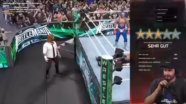 00:14:54Nach den Ankündigungen und dem Spielewechsel startet das eigentliche Gameplay mit WWE 2K25. Die Anreise und die Einrichtung des Spiels gestaltet sich schwierig und zeitaufwendig, da Online-Lobbys gefunden, erstellt und beigetreten werden müssen. Im weiteren Verlauf stößt ein namensloser Mitspieler, der sich "Rick Ross" nennt, unerwünscht in die Lobby. Nach technischen Problemen und einem unfairen Sieg eines Teilnehmers wird ein neuer Lobby erstellt, um den Tag-Team-Modus zu starten.