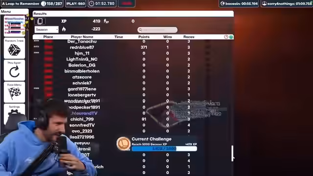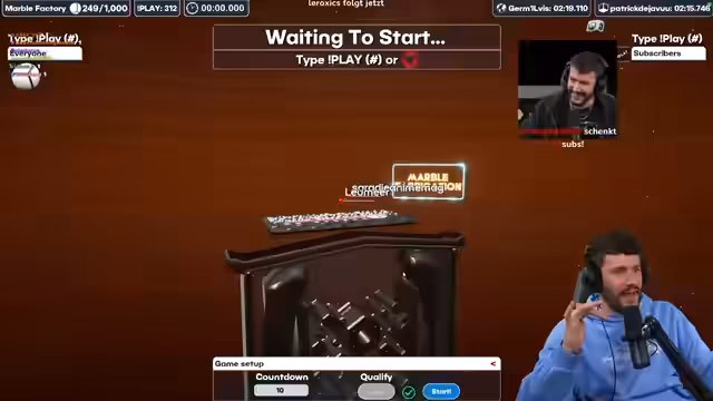 00:11:38Zentrales Anliegen des Streams ist eine Kanalwette, bei der der Streamer versucht, in die Top 100 zu kommen. Die Zuschauer werden aufgefordert, in den Chat '!play' zu schreiben, um an dem Spiel teilzunehmen und ihre Kanalpunkte zu setzen. Der Streamer appelliert mehrmals an das Vertrauen der Community und verliert die Wette mehrmals, was zu emotionalen Reaktionen und einem erneuten Appell an die Zuschauer führt, weiter auf ihn zu wetten.