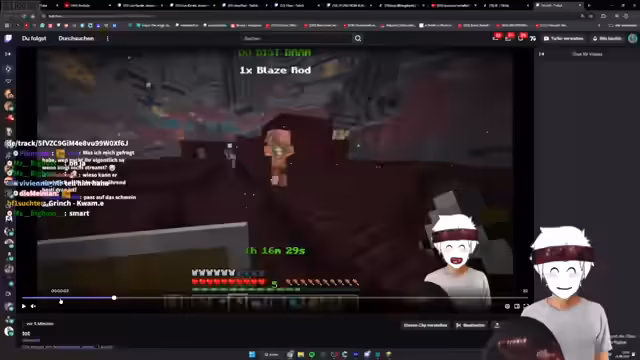 01:51:03Die Zusammenarbeit konzentriert sich nun auf das Sammeln von Blaze Rods. Der Streamer und sein Partner agieren synchron, wobei einer die Blazes ablenkt und der andere farmt. Es kommt zu einem dramatischen Moment, als einer der Spieler einen tödlichen Magma Cube nicht ernst nimmt und stirbt, was den Run vorerst beendet. Der Streamer analysiert den Tod und führt ihn auf die geänderten Hitboxen in der neuen Minecraft-Version zurück, was ihn frustriert aber auch motiviert, es erneut zu versuchen.
