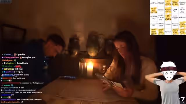 04:15:55Es wird spekuliert, dass die beiden Teilnehmer die Zuschauer absichtlich für guten Content veralbern. Die Interaktionen entwickeln sich zu Flirt-Spielen, die an typische Teenager-Verhaltensweisen erinnern, wie sie in der Nachmittagsschule oder bei heimlichen Schwärmereien vorkommen. Diese Spiele, wie das gegenseitige Fragen nach dem Alter oder das Ausführen von kleinen Aufgaben, werden von den Zuschauern als „krank“ und ungewöhnlich für Erwachsene empfunden. Die Begleiterin fragt Hugo, ob er mehr Männer als Frauen küsst, was zu einer humorvollen Diskussion führt. Es wird auch angemerkt, dass Hugo von seiner Begleiterin mit High-Fives konditioniert wird, was seine Reaktionen steuert. Diese Art von Unterhaltung wird als „Kindergarten-Riss“ bezeichnet, da sie sehr einfach und spielerisch ist.