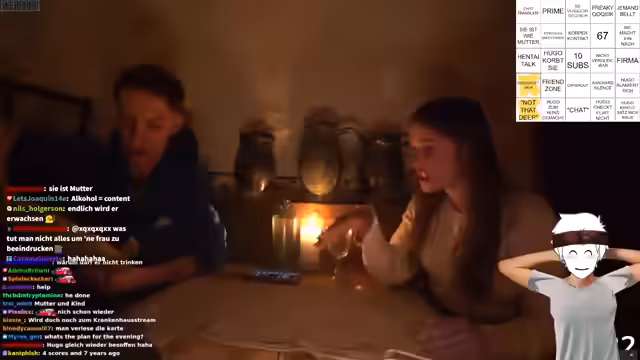 04:35:25Es wird offenbart, dass Hugo kein alkoholisches Getränk vor sich hat, weil er seinen Personalausweis nicht dabei hat und daher nichts kaufen darf, was zu einer humorvollen Situation führt, da er trotz Immobilienbesitz als zu jung angesehen wird. Hugo war zuvor sehr betrunken, aber er scheint sich langsam zu erholen. Es wird erwähnt, dass Annika, die als Hugos „zweite Mutter“ bezeichnet wird, diesen Stream selbst gewünscht hat und sogar mit Hugos Mutter über die Situation gesprochen hat, um die Beziehung zwischen Hugo und seiner Begleiterin voranzutreiben. Dies deutet auf eine tiefere, inszenierte Ebene des Streams hin, bei der Annika eine aktive Rolle im Hintergrund spielt, um die Interaktionen zu fördern. Die gesamte Situation wird als „Böbermann-Experiment“ beschrieben, da sie so unwirklich und absurd erscheint.