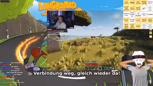 05:39:25Der Streamer überlegt, sich in Minecraft einzuloggen, wobei er erwähnt, dass er sich nicht mehr genau erinnert, was dort zuletzt passiert ist, außer dass er möglicherweise gestorben ist. Er spricht über die Möglichkeit eines kurzen Streams heute und erwähnt, dass Veto bald dazukommen wird, um zu quatschen. Es gibt kurze, humorvolle Einlagen mit Enten-Geräuschen und die Erwähnung eines Basti-Clips. Die anfängliche Verwirrung über den Spawn-Punkt in Minecraft und die Notwendigkeit, fehlende Gegenstände zu looten, wird thematisiert. Die Diskussion schwenkt dann zu einem Gespräch mit Hugo, der über Kopfschmerzen klagt, die er auf zu viel Weinkonsum nach dem Verlassen einer Bar zurückführt. Er reflektiert über die Menge des Alkohols und die Angemessenheit für den Spaß.