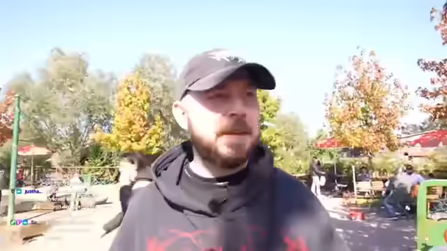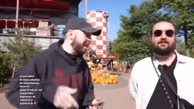 01:56:59Nachdem ein Kind auf der Rutsche gestürzt ist, setzt die Gruppe ihre Erkundungstour fort. Es werden verschiedene Attraktionen wie eine Kartoffelrutsche und ein Fluggerät namens 'Dönerspiel' entdeckt, bei dem sich die Teilnehmer schnell drehen können. Es wird überlegt, ob man mit dem Gruseltrecker fahren soll, bevor es voller wird. Ein Volvo-Bagger weckt das Interesse, und es werden Erlebnistaler für die Nutzung benötigt. Der Rattenpub wird kurz besucht, aber als nicht altersgerecht befunden. Es werden verschiedene Essensstände mit ungewöhnlichen Angeboten wie 'Sticky Nuts Special' und 'Fallobst-Reste' erkundet. Der Streamer betont, dass er es lustig findet, wenn Kinder hinfallen, was er als sein persönliches Freizeitparkerlebnis bezeichnet. Es wird überlegt, ob man Ponyreiten oder die Ziegen besuchen soll, aber der Streamer gibt zu, dass er Tiere nicht mag und lieber zum Pfannkuchenhaus möchte. Er erzählt von seiner Zeit als Erzieher und wie oft er sich das Lachen verkneifen musste, wenn Kinder hinfielen. Die Gruppe verirrt sich auf dem Weg zum Pfannkuchenhaus und diskutiert über die Möglichkeit, Geocaching im Park zu betreiben. Die schlechte Internetverbindung wird thematisiert und die Idee eines Starlink-Systems für eine bessere Verbindung ins Spiel gebracht. Es wird überlegt, ob man den Starlink bei Nils drauf tun soll und der draußen ist, um eine bessere Verbindung zur Kamera zu haben.