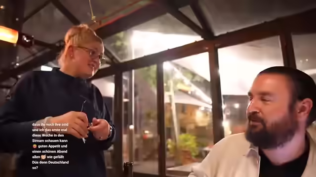 09:12:51Es wird über die Anspannung vor dem Treffen gesprochen, da Michelle nicht zu früh ankommen sollte. Es gab Probleme mit der Zugverbindung, was zu einer Verspätung führte. Die Fahrt zum Restaurant war schnell, und der Hauptbahnhof in Leipzig wird als schön beschrieben. Michelle freut sich darauf, Leipzig kennenzulernen und fit zu bleiben. Es wird kurz über den Karls Erdbeerhof gesprochen. Lisa wird gelobt, dass sie alles möglich gemacht hat. Es wird ein Shoutout an Sterzig gegeben, und der Erdbeerhof wird als positiv bewertet. Es gab jedoch Audio-Probleme auf Instagram. Der Erdbeerdöner wird als Knaller bezeichnet, und der Eiran mit Erdbeer-Geschmack als Offenbarung. Es wird gewarnt, niemals live vom Erdbeerhof zu streamen, da die Verbindung sehr schlecht ist. Lisa wird dafür gelobt, dass sie alles möglich gemacht hat. Die Lampen im Restaurant werden als wild beschrieben.