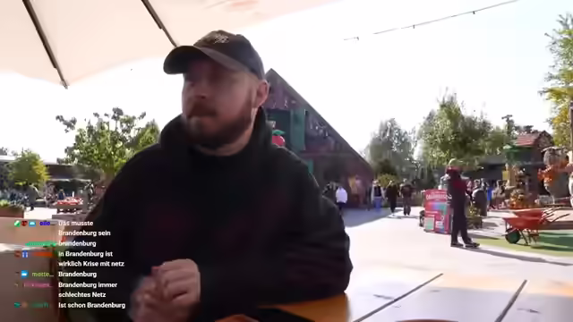 04:16:06Düs hat sich einen Slush geholt, der wie eine Palme aussieht. Es wird erwähnt, dass es sehr heiß ist. Der Slushy wird als sehr lecker beschrieben und schmeckt erdbierig. Es wird festgestellt, dass er nicht aus Erdbeeren, sondern aus Marmelade gemacht ist und sehr süß schmeckt. Aufgrund der schlechten Verbindung wird beschlossen, sich zu bewegen. Es geht zur Bimmelbahn, auch bekannt als LPG Rote Rübe. Es wird betont, dass man sich im Karls Erdbeerhof befindet und die Freizeitparks genießt. Es wird ein Spruch über Zombies und attraktive Personen gemacht. Die Abfahrt mit der Bahn wird vorbereitet, und es wird festgestellt, dass sie gerade verpasst wurde. Die Fahrt dauert 10 Minuten und führt Richtung Istanbul. Die Idee, Starlink zu holen, wird erneut erwähnt, da die Verbindung schlecht ist. Es wird festgestellt, dass man keine Tickets benötigt, um den Park zu betreten, sondern jede Attraktion einzeln bezahlen kann. Die Hitze wird als Krise beschrieben. Die schlechte Mastabdeckung und das WLAN werden bemängelt. Nils soll den Starlink holen, um ein eigenes WLAN einzurichten. Die Brezel schmeckt nicht nach einer Brezel. Es wird das Bremer Pfannekuchenschiff erwähnt, das an einem bestimmten Tag nicht da war. Es wird überlegt, ob Nils bereits auf dem Weg ist. Die schwankende Zuschauerzahl wird kommentiert. Es wird vermutet, dass sich die Verbindung verbessert, wenn man sich bewegt.