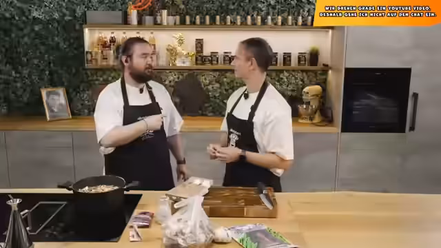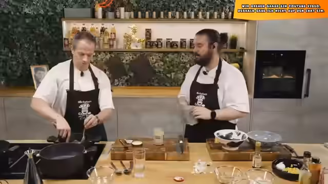 01:43:14Die Streamer begrüßen sich und wechseln in den Aufnahmescreen für das YouTube-Video. Es wird klar kommuniziert, dass während der Kochsequenzen nicht auf den Chat eingegangen werden kann, aber in Pausen Interaktion möglich ist. Franz, der Gast, begrüßt das Publikum und bestätigt seine Anwesenheit. Es wird ein warmer und produktiver Vibe beschrieben, wobei die Temperaturen im Raum stark schwanken.