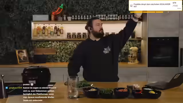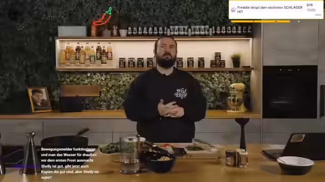 01:31:27Nach der Zubereitung des Mittagessens wird der Stream auf YouTube umgestellt. Es wird ein Video gedreht, dessen Thema "Neuigkeiten aus dem Supermarkt" ist. Der Streamer baut dafür in die Hauptküche um und versucht, im Hintergrund zu verschwinden, da er im Bild stören würde. Nina hilft bei der Vorbereitung der B-Rolls. Der Streamer kündigt für den nächsten Tag ein Kochduell an, bei dem er aufgrund eines Geburtstagsabschieds nicht persönlich teilnehmen kann. Sein Team soll stattdessen übernehmen.