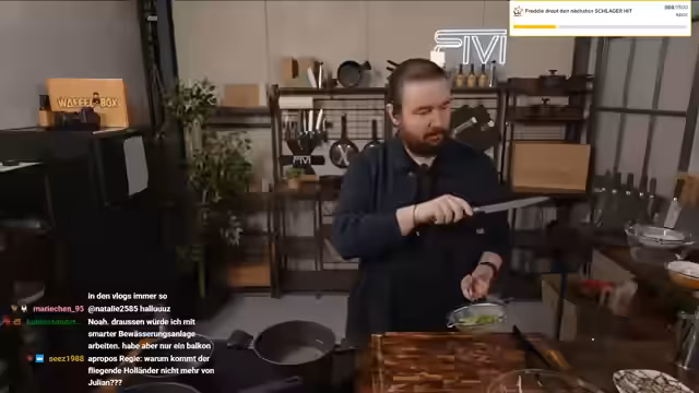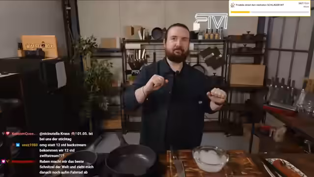 00:13:26Während des Kochs wird über das aktuelle Bauprojekt gesprochen. Ein Container wurde mit speziellen Schrauben im Boden verankert. Anthrazitfarbene Fenster sollen folgen, um die finalen Arbeiten abzuschließen. Der Streamer erwähnt, dass parallel die Umgestaltung des Büros voranschreitet. Ein Meetingraum ist fast fertig, die Regie wurde aufgehübscht und es gibt Pläne für eine smarte Bewässerungsanlage im Außenbereich, um Pflanzen zu pflegen.