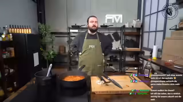 00:19:08Freddy startet den Stream mit dem Hinweis, dass er als professioneller Influencer agieren muss und eine Instagram-Story über den Livestream erstellt. Er erwähnt seine Kochmarke, auf die man klicken kann, um den Livestream zu verfolgen, wo gekocht, probiert und getestet wird. Zusätzlich wird ein großes Match im Gaming-Bereich angekündigt. Der Stream wird auf verschiedenen Plattformen live übertragen, wobei ein Klick auf den Link zu Twitch führt. Freddy erwähnt, dass er sich vorbereitet und es ein gemütlicher Start in den Tag wird, da der Stream lange live sein wird. Er holt sich etwas zu trinken und spricht gleichzeitig mit den Zuschauern. Es wird überlegt, ob neue Mios benötigt werden, um den Kasten aufzufüllen.