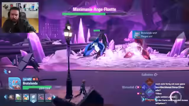 01:21:46Oben im Turm im Kontrollzentrum scheint Flöte die Situation nicht meistern zu können. In einer dramatischen Cutscene spricht Flöte, das überfordert ist, mit dem Streamer. Er erkennt, dass Sigarde, eine weitere wichtige Figur, ihm helfen könnte. Sigarde wird auf dem Turmdach in der Zone Rose erwartet. Gleichzeitig kämpft der Streamer gegen die ersten Mega-Manie-Pokémon, um die Situation zu stabilisieren, bis er zur Lösung gelangt.