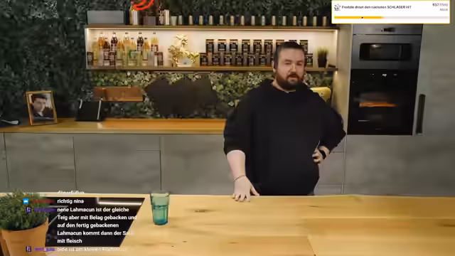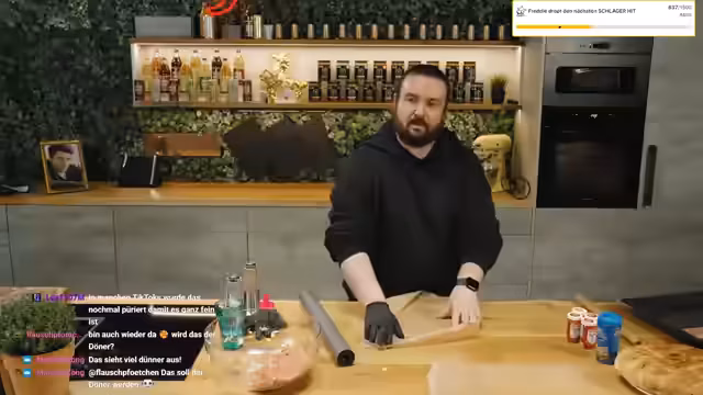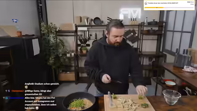 00:06:10Der Streamer spricht über die aktuelle Wetterlage, die für schlechte Laune sorgt, und teilt mit, dass eine geplante LAN-Party aufgrund von Krankheitsfällen der Teilnehmer verschoben wird. Es werden Produkte aus dem eigenen Shop, insbesondere Messer von Tom Voss, beworben. Während des Kochens erfolgt ein Plädoyer für faire Preise bei Eigenmarken, um den Eindruck von Billigkeit zu vermeiden. Im Chat laufen zahlreiche Abo-Geschenkte an, die mit Freddy Love und Hult kommentiert werden.
