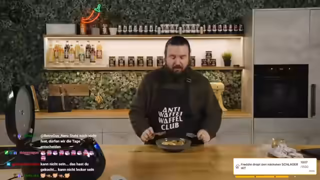 06:54:09Ein Raid von DeepXHard, einem Musik-Stream, wird angekündigt. Es wird spekuliert, ob es sich um einen DJ-Stream handelt und ob die Mitglieder DJs sind. Die Community wird gebeten, DeepXHard willkommen zu heißen. Es wird überlegt, ob man ein Boiler Room-ähnliches Set machen könnte. Das Sub-Ziel von 1.500 Subs wird erwähnt, bei dem Sturmwaffel einen Schlagersong produzieren und im Stream performen würde. DeepXHard schlägt ein Cooking Rave Kitchen vor, bei dem sie am Herd etwas zeigen und DeepXHard an den Decks auflegt. Es wird über einen Techno-Mittwoch diskutiert, bei dem DeepXHard live ein DJ-Set während des Mitkoch-Streams einspielen würde. Nils, der Geburtstag hat, wird als großer Techno-Fanatiker beschrieben. Der Chat einigt sich darauf, Nils einen vernünftigen Techno-Mitkoch zu schenken, der vorbereitet ist und bei dem Timo sich um die Technik kümmern kann.