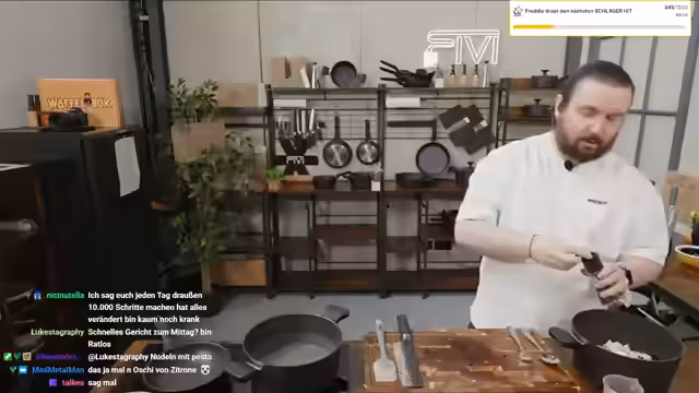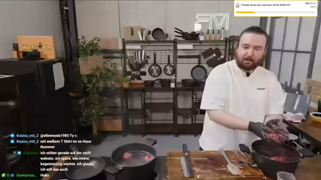 00:47:24Das Hauptthema des Streams ist das Kochen von Rote-Bete-Knödeln. Der Streamer führt den Prozess detailliert vor: Das Brot wird eingeweicht, die Zwiebeln in Butter gedünstet und die rote Bete gerieben. Alle Zutaten werden mit Ei, Mehl, Gewürzen und Muskat zu einem Teig verrührt. Er betont, dass er kein professioneller Koch ist, das Ergebnis aber trotz des Chaos in der Küche gut aussehen könnte und lädt die Zuschauer ein, das Rezept auf seiner Website nachzulesen.