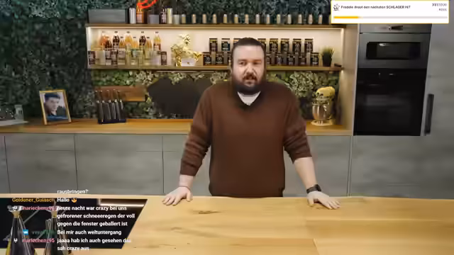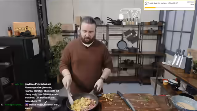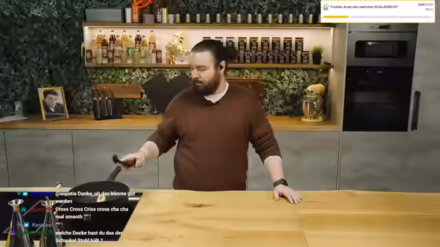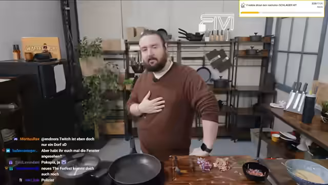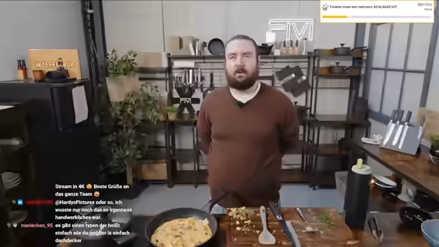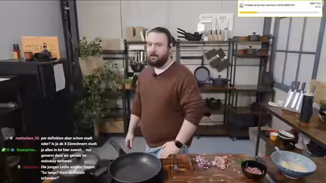 00:01:17Nach einem turbulenten Streaming-Start mit einem unerwartet hohen Zuschauerzahlen begrüßt der Streamer seine Community. Er reflektiert über seinen Schlaf, der durch einen anhaltenden Schluckauf gestört war, und erörtert seine täglichen Schrittzahlen im Bereich von 6.400, die hauptsächlich durch Arbeit entstehen. Anschließend stellt er die Vorbereitung für das heutige Gericht, ein Bauernomelett, vor und erwähnt, dass Rewi, ein reeller Bauer, vorbeikommen wird, um bei der Zubereitung zu helfen.