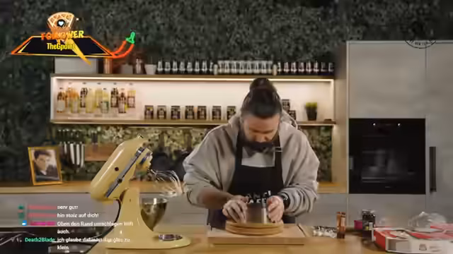 05:01:17Es wird die bevorstehende Kreation eines "Chaos Cakes" angekündigt, der entweder artistisch oder trashig sein kann. Als Basis dienen gekaufte Wiener Böden, um Zeit zu sparen. Die Community wird dazu aufgerufen, eigene chaotische Kuchen zu kreieren und zu teilen. Eine Sahnecreme wird zubereitet und in einen Spritzbeutel gefüllt. Es wird mit verschiedenen Aufsätzen experimentiert, um einen wilden Look zu erzielen. Ein Tortenring wird verwendet, um den Kuchen zu verkleinern und einen gleichmäßigen Rand zu erhalten. Die abgeschnittenen Kuchenstücke werden als möglicher Brunch-Snack erwähnt. Der Kuchen wird mit einer veganen Kakao-Creme, Erdbeermarmelade und der Sahnecreme geschichtet. Das Rezept wird durch eigene Variationen ergänzt, um den persönlichen Geschmack zu treffen. Es wird eine dünne Schicht Erdbeermarmelade aufgetragen, um für eine geschmackliche Überraschung zu sorgen.