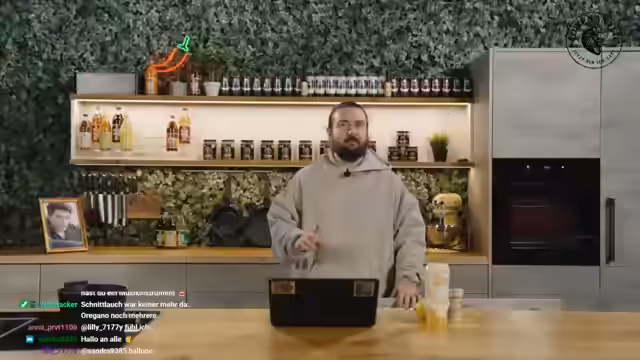 02:08:48Während der Vorbereitung stellt der Streamer fest, dass einige Zutaten wie Petersilie und Schnittlauch fehlen und kritisiert das Team, dies nicht besorgt zu haben. Gleichzeitig wird Nina als Teammitglied erwähnt, die normalerweise unterstützend tätig ist, aber heute aufgrund von Krankheit im Homeoffice arbeitet. Der Fokus liegt darauf, dass Kochen mit Rezepten einfach ist, wenn die Zutaten vorhanden sind.