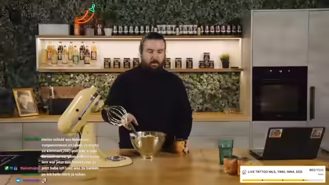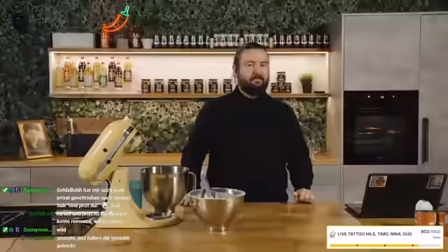 00:18:44Für den Back-Abend steht ein Mandarinenstreuselkuchen auf dem Speiseplan. Beim Thema Kochen gibt es keine festen Regeln, je nach Video-Produktion wird am Tag ein- bis sechsmal gekocht. Neben kulinarischen Themen spricht der Streamer auch über sein Leben als Influencer und widerspricht der Annahme, dies bedeute viel Freizeit. Er rät stattdessen zu einer soliden Ausbildung im Handwerk als Basis für einen späteren Weg im kreativen Bereich.
