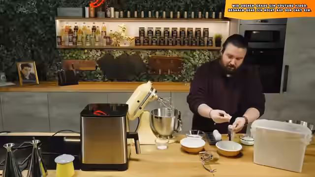 04:30:42Der Stream beginnt mit der Vorbereitung der Zutaten für ein Baumkuchen-Rezept. Nach anfänglichen Unstimmigkeiten über die Menge der Zutaten, insbesondere der Butter, werden diese gewogen und vermischt. Der Streamer bereitet die trockenen Zutaten wie Mehl, Backpulver und Speisestärke vor, die später zur Creme gegeben werden müssen, um eine bessere Verarbeitung zu gewährleisten. Parallel dazu wird die Butter mit Zucker und Vanille zu einer Creme geschlagen, wobei betont wird, dass die Buttercreme nicht zu lange geschlagen werden darf, um eine Gerinnung zu vermeiden.