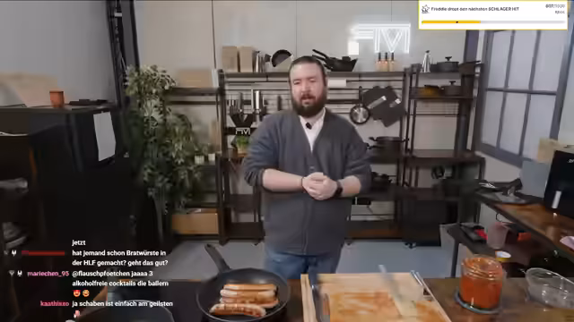 00:42:50Der Hauptteil des Streams ist dem Zubereiten einer klassischen Currywurst mit Pommes gewidmet. Zuerst wird die Sauce aus Tomaten, Currypulver, Paprika, Essig und Gewürzen zubereitet. Der Streamer nutzt dabei einen neuen Minibackofen (HLF) von CaseKing und diskutiert über die Zubereitungstemperatur und -zeit für die Pommes im Backofen. Es werden Tipps zur Pflege der Kochutensilien, wie die Behandlung des Holzbrettes mit Salz und Zitronensäure, gegeben.