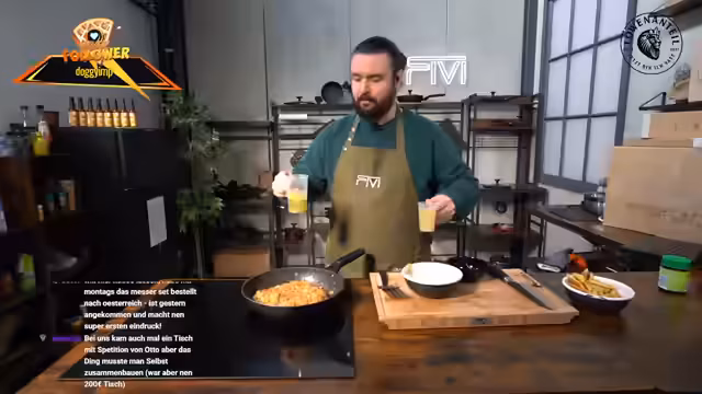 00:19:14Der Stream startet mit einem Raid von den Sizzlern. Es wird über Karneval gesprochen, wobei Sturmwaffel als Krümmelmonster verkleidet war. Er erwähnt Sticker auf seinem Laptop, darunter von Robert Galcini. Es folgt ein Gespräch über Auto-Sticker, inklusive eines Sylt-Stickers, der vor dem Sylt-Vorfall angebracht wurde, und eines AMG-Stickers. Sturmwaffel bereitet Schupfnudeln mit Sauerkraut zu, wobei er scherzhaft die Lithium-Batterie für die Soße erwähnt. Er wünscht sich ein großes Brettchen zum Zwiebelschneiden und freut sich über seine mitgebrachte Schüssel von zu Hause. Caro wird für ihren dreimonatigen Sub gedankt. Es wird über französische Werbung im Stream gewitzelt und über Schlafprobleme gesprochen. Kimberly wird für ihren neuen Sub gedankt.