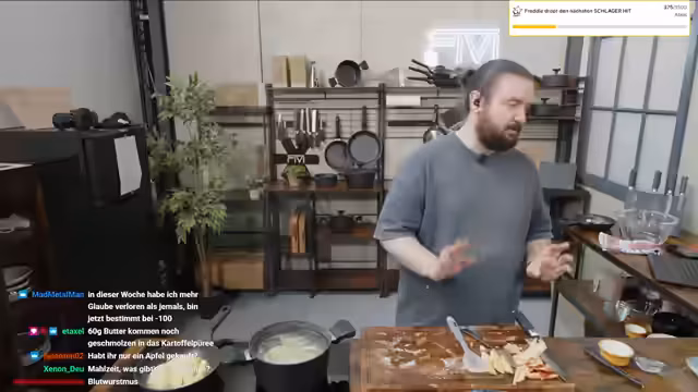 01:07:33Es wird die Vorfreude auf das Wochenende und den morgigen Stream zum Ausdruck gebracht, während gleichzeitig auf die Streaming-Pause nächste Woche hingewiesen wird. Long wird begrüßt und nach seinen Wochenendplänen befragt, wobei sein aktives soziales Umfeld hervorgehoben wird. Es wird ein Vergleich zu Julian gezogen, der jedes Wochenende Beats produziert. Eine Anekdote über einen Freund, der Blutwurst auf spezielle Weise zubereitet, wird erzählt. Die Verkostung des zubereiteten Gerichts beginnt, wobei der Apfel, die Zwiebeln und das Kartoffelpüree positiv bewertet werden. Die Blutwurst wird als persönliches Problem dargestellt, aber die Notwendigkeit, neue Sachen auszuprobieren, wird betont. Das Gericht in seiner Gesamtheit wird als gut funktionierend beschrieben, besonders aufgrund des perfekt gesalzenen Kartoffelpürees. Es wird angekündigt, dass es mit dem YouTube-Dreh fortgesetzt wird, gefolgt vom Martini-Freitag, wobei Duis voraussichtlich dabei sein wird. Es wird erwähnt, dass Julian auf dem Weg nach oben ist und dass B-Roll-Aufnahmen und ein Thumbnail erstellt werden sollen, bevor es mit dem Video losgeht.