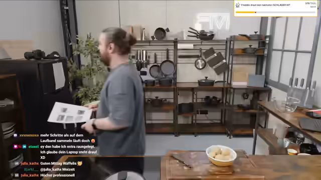 In der Küche herrscht Chaos bei der Zubereitung von 'Himmel und Äd'. Es gibt Ankündigungen für Gaming-Streams und Diskussionen über bargeldlose Zahlungen. Ein Mix Markt Video Dreh ist geplant. Es folgt eine Verkostung von Mix Markt Produkten, darunter Belashi und Quass, sowie das Spielen von Activity mit dem Team.