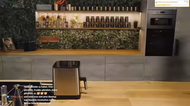 03:59:36Für das Kochduell wird ein Rezept für Air Fryer-Weihnachtsmandeln vorbereitet. Dabei werden Mandeln, Wasser, Vanillezucker, normaler Zucker und Zimt zu einer matschigen Masse verrührt. Diese Masse wird für 15 Minuten im Air Fryer bei 180 Grad gegart und zwischendrin gerüttelt. Der Streamer ist gespannt, ob das einfache Rezept ohne ständiges Rühren am Herd funktioniert und einen zeitsparenden Hack darstellt.