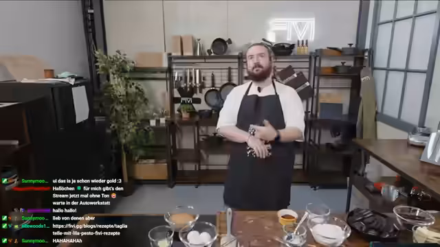 05:06:00Das Kochduell beginnt mit einer kurzen Erklärung der Regeln: Die Zuschauer können später Punkte vergeben, sowohl für die Einhaltung des Rezepts als auch für den Geschmack. Die teilnehmenden Personen wissen nicht, welche Zutaten sie erhalten haben, was die Spannung erhöht. Es wird die Möglichkeit geboten, Waffelpunkte im Chat zu setzen, um auf den Gewinner zu wetten. Der Streamer präsentiert seine neue Cap und seinen neuen Pulli und erzählt, dass Nils ihm die angebliche Bedeutung des Vans-Logos erklärt hat, welches angeblich für '420' steht. Dies wird mit humorvoller Skepsis aufgenommen. Anschließend werden die Zutaten für das Kochduell enthüllt: Nudeln, Gurke, Zwiebel, Hühnchen, Ei, Sojasauce und Sesam. Der Streamer entscheidet sich spontan für 'Ramen', während die andere Person 'gebratene Nudeln' wählt. Die Herausforderung besteht darin, aus diesen begrenzten Zutaten ein kreatives und schmackhaftes Gericht zu zaubern, insbesondere ohne Brühe für die Ramen.