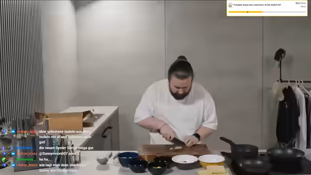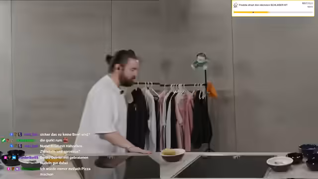 05:14:50Die Streamer bereiten ihre Gerichte für das Kochduell zu, wobei der Fokus auf der Zubereitung von Nudeln, Spiegelei und angebratenem Hähnchen liegt. Es wird diskutiert, wie lange die Nudeln kochen müssen und dass es sich bei den Zutaten um eine „Suffpfanne“ handelt, ein Gericht, das man oft spontan zubereitet, wenn man betrunken ist. Die Streamer teilen persönliche Anekdoten über Late-Night-Snacks, wie kalte Nudeln mit passierten Tomaten oder Bratkartoffeln mit Spiegelei, inspiriert von der Serie Dexter. Es wird auch über die Schwierigkeiten bei der Beschaffung von Küchenutensilien im Stream-Set gesprochen, da viele Gegenstände fehlen oder verlegt wurden.