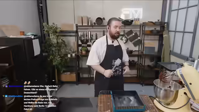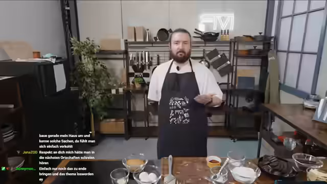 00:38:23Der Streamer kündigt an, einen Backsnack, Schoko-Brownies, zuzubereiten, obwohl er Backen hasst, da es zu viel Mathematik und zu viele Regeln erfordert. Er berichtet von einem langen Abend auf einer Videodays-Veranstaltung von Shopify und YouTube-Shopping, bei der er bis 1 Uhr morgens unterwegs war und mit Mirella gesprochen hat. Er erwähnt auch einen Stadionbesuch, bei dem seine Jacke von betrunkenen Jugendlichen angekokelt wurde, was ihn dazu veranlasste, das Spiel vorzeitig zu verlassen. Diese Woche war auch geprägt von einem Einbruch bei seinen Eltern. Er fasst zusammen, dass die Woche sehr chaotisch war und er sich auf das Wochenende freut. Er spricht über seine Abneigung gegen Backen im Vergleich zum Kochen, da Backen präzise Mengen und Temperaturen erfordert, was für ihn keine Leidenschaft, sondern Mathematik ist. Er betont, dass er ohne eine Küchenmaschine nicht backen würde.