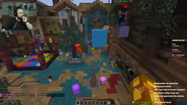 00:27:28Es werden Party Games auf GommeHD.net gespielt, was an Mario Party erinnert. Es wird festgestellt, dass der Server noch immer gut besucht ist und die Spiele Spaß machen. Trotzdem gibt es immer wieder technische Probleme, die jedoch behoben werden konnten. Es wird eine Runde Mario Party gespielt, bei der verschiedene Minispiele absolviert werden müssen. Dabei stellt sich heraus, dass einige Spieler deutlich besser sind als andere. Trotzdem wird der Ehrgeiz geweckt, ein Spiel zu gewinnen. Es wird überlegt, ob man in Zukunft öfter zu Beginn des Streams eine Runde Minispiele spielen soll, um den Stream zu testen und Abwechslung zu bieten. Es wird auch kurz über eine Unwetterwarnung in MG Action Town gesprochen.