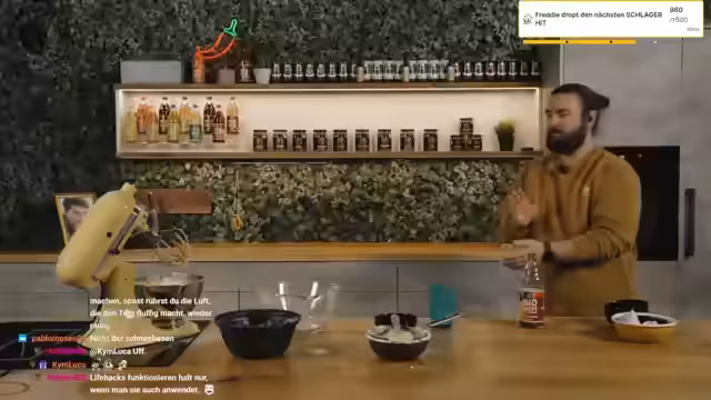 03:01:18Es wird über den laufenden Hypetrain gesprochen und darauf hingewiesen, dass Omid diese Woche nicht anwesend ist. Es wird erwähnt, dass Omid sich etwas mit seinem Haarschnitt überlegt hat, falls der Hypetrain-Rekord gebrochen wird. Ein Update zur Tattoo-Session wird gegeben: Diese findet nächste Woche Montag während des Bau- und Bastel-Streams statt, da die Beteiligten krank sind. Die Tattoo-Session ist ein Ergebnis des geknackten ersten Abo-Ziels von 1000 Subs. Es wird erklärt, dass Omid sich bei Isa drei Tattoos aussuchen wird und die Zuschauer bestimmen dürfen, welches er sich stechen lässt. Außerdem wird er sich einen fetzigen Haarschnitt verpassen lassen, dessen Details noch unklar sind. Es wird spekuliert, ob es ein Kurzhaarschnitt oder ein R9 wird. Es wird ein Versprechen für den Fall gegeben, dass der Hypetrain Stufe 15 erreicht: Dann werden Omid 80 Euro überwiesen. Es wird nebenbei das Mehl mit dem Backpulver vorbereitet.