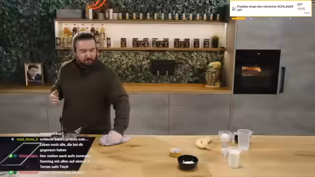 05:15:33Bei der Zubereitung treten die ersten Probleme auf. Sahne lässt sich nicht wie erwartet steif schlagen, was zu einer ersten Krise führt. Ein genauerer Blick in das Rezept offenbart zudem einen Fehler: Zutaten sind falsch angegeben, was den gesamten Prozess weiter erschwert. Dies führt zu ungläubigen Kommentaren und Nervosität.