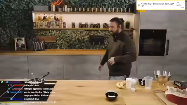 00:08:29Der Streamer erläutert den Zeitplan des heutigen Streams, der aus drei Teilen besteht. Zuerst wird der Quick Mittach gekocht, eine einfache Gnocchi-Gemüsepfanne. Darauf folgt ein Dreh für den YouTube-Kanal, bei dem Temu-Gadgets getestet werden. Abends steht das große Backen auf dem Programm. Er stellt die Marke FIVI vor, die die Küchenutensilien für das heutige Gericht herstellt, und verweist auf den Rezepte-Blog der Marke.