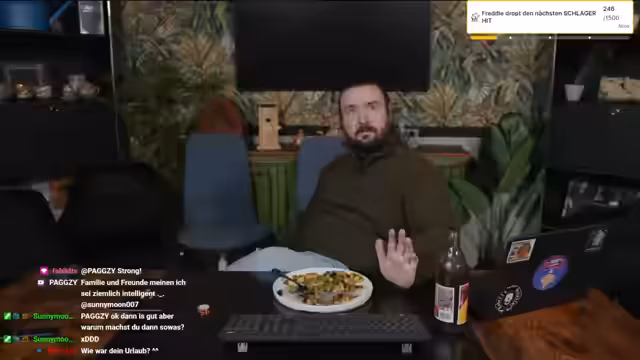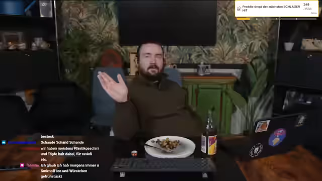 06:24:14Nach Abschluss des Backens und dem gemeinsamen Probieren wird der Stream beendet. Der Streamer verabschiedet sich von der Community, kündigt den "Quick-Mittag" für den nächsten Tag an und schickt die Zuschauer zu einem anderen Stream auf Twitch. Es folgt ein herzliches Tschüsschen.