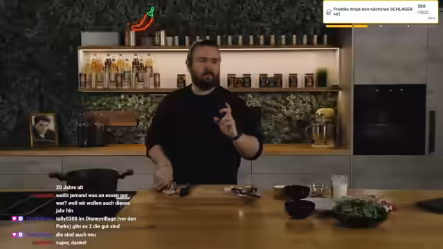 00:50:52Der Stream setzt die Zubereitung der Pasta fort. Er würzt die Sauce unter Zutaten wie grünem Pfeffer und Petersilie, während er über diverse Themen plaudert. Dabei geht er auf die Zubereitung der Nudeln nach Packungsanleitung, die Verwendung von speziellen Pfannen und die Zubereitung von Fotos durch Isa für Thumbnails ein. Der Fokus liegt auf der Interaktion mit der Community während des Kochvorgangs.