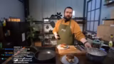 04:40:57Nach einer kurzen Pause startet der eigentliche Mitkochstream. Als Vorspeise werden gefüllte Paprikas zubereitet. Gleichzeitig beginnt eine spontane Aktion: Timo einen Haarschnitt (R9) zu verpassen. Das Ganze wird als Bild-im-Bild-Format gezeigt, damit die Zuschauer sowohl das Kochen als auch den Haarschnitt verfolgen können.