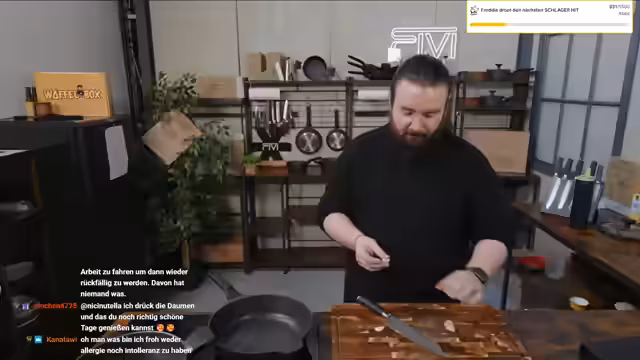 Der Stream startete mit der Zubereitung von asiatischen Cheesy Garlic Noodles. Dabei wurden auch neue Messer vorgestellt. Nach dem gemeinsamen Essen gab es eine Pause. Im Back-Teil stand ein Ameisenkuchen vom Blech im Fokus, kombiniert mit einer Diskussion über gesunde Ernährung. Der Stream endete mit einer Vorschau auf das neue Pokémon-Spiel.
