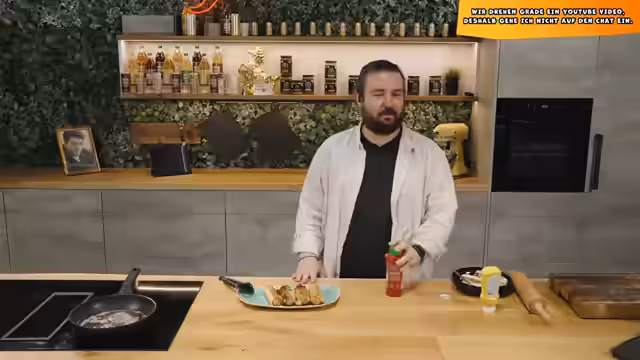 03:04:37Als dritte und letzte Köstlichkeit des Streams werden Toast-Rollen nach einem viralen TikTok-Rezept zubereitet. Hierfür wird das Rand von Toastbrotscheiben abgeschnitten, mit Käse und einer Wurst belegt und aufgerollt. Die so entstehenden Rollen werden in einer Mischung aus Ei und Milch gewendet und anschließend in einer Pfanne mit neutralem Öl in einer Art 'shallow frying'-Technik goldbraun gebraten. Das Ergebnis ist eine Art süße, würzige Hotdog-Variation.