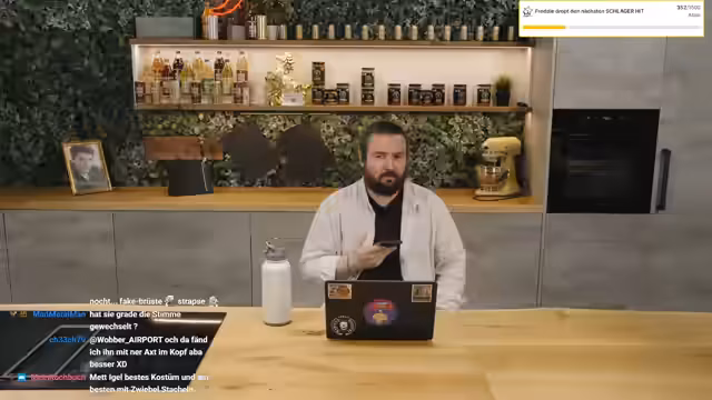 02:24:33Während das Kochen im Hintergrund läuft, wechseln die Themen schlagartig. Der Streamer stellt Fragen an das Chatpublikum, insbesondere aus Hamburg, und entdeckt, dass die amerikanische Pizzakette Papa John's auch in Deutschland vertreten ist. Es folgt eine persönliche Anekdote über Rückenschmerzen nach einem Arbeitsunfall und ein unerwarteter technischer Ausfall des Streams, der jedoch schnell behoben wird. Anschließend wird der kurz zuvor eingetroffene Merchandise von 'sturmwaffel' vorgestellt.