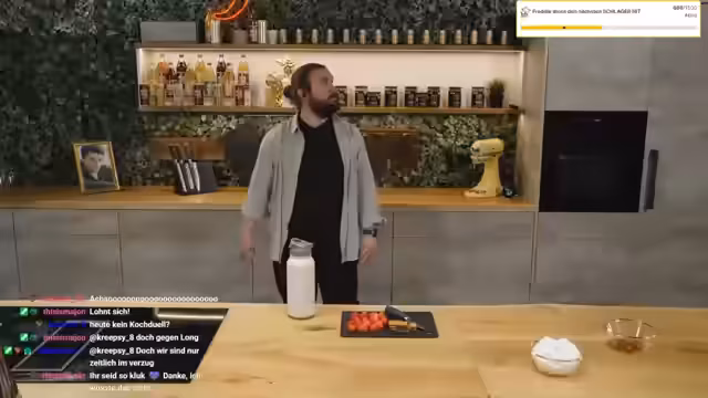 02:54:20Das ist der Meltdown. kann ich kurz den Laptop mir leihen und das hier aufstellen als Sichtschutz?. Wenn ich was sehe, Long, sage ich es laut im Stream, weiß ich es auch. Guck nicht hin. Frederik, fair bleiben. Ich habe hier mir einen richtigen Wall aufgebaut. Das Grüne an den Erdbeeren kann man übrigens mitessen. Ich weiß, ich esse das auch sehr mit, aber zum Deko-Zwecken brauche ich eine glatte Oberfläche. Und da ich weiß, dass das viele nicht mitessen, mache ich das jetzt erstmal ab.