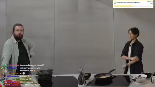 03:05:17Das ist nicht abgemessen, das ist nach Gusto. wie gesagt, dafür, dieses Jahr läuft extrem strukturiert durch die Streams an vielen Stellen, muss ich sagen. wie wir davor gedreht haben, mach. Das ist eine coole Frise. Das sieht ein bisschen aus wie ein Einhorn. unterm Strich sind wir zeitlich tatsächlich momentan gerade gar nicht im Verzug. Wir haben noch 20 Minütchen, bis das losgehen würde, bauen wir aber um. Normalerweise wäre jetzt in 5 Minütchen Umbauzeit und drehen würden wir kurz nach 18 Uhr anfangen. Aber kriegen wir, glaube ich, hin. es. Ihr seid kluck, ich wusste das nicht. guck. Die sind immer hilfsbereit und flott. Mods darf man auch loben. und. Nino, wie sieht's aus? Ich möchte dir nicht dazwischenfucken. Ich mach nur einen reinen halben Esslöffel. Ich meinte das gar nicht pushy. Ich wollte nur generell fragen. Egal, kann ich noch einen Esslöffel. Ach. Ich hab einen verloren. Wie einen goldenen Stich. Nee, das geht nicht. Ach.