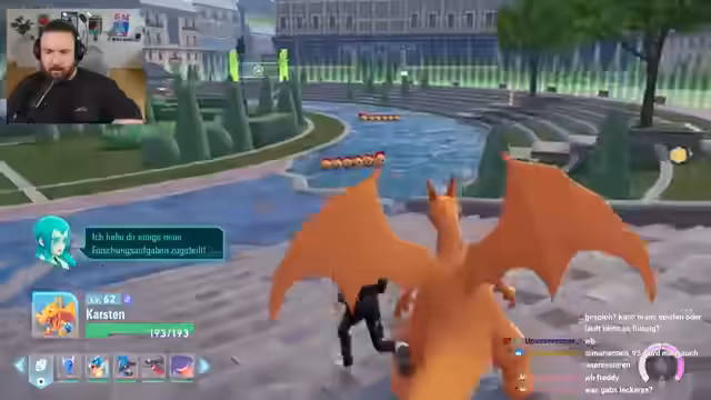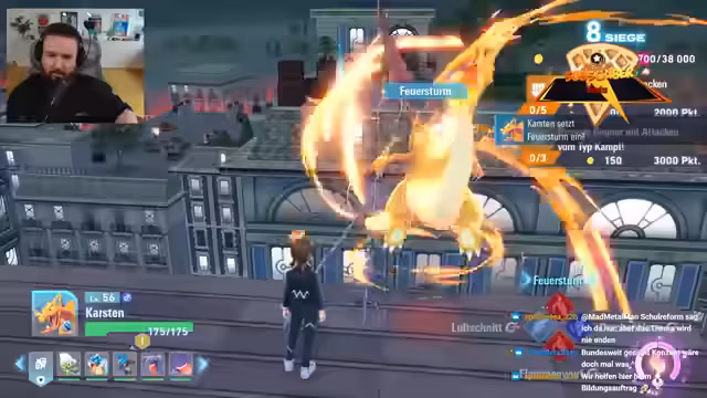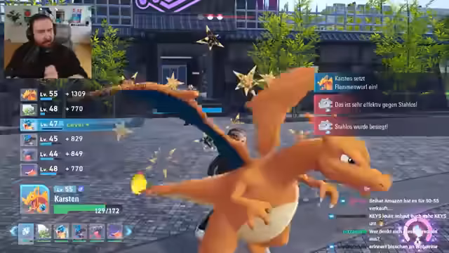 00:00:03Der Streamer startet in einen Battle, erwähnt Motion Sickness bei schnellen Bewegungen und kommentiert den Sonnenuntergang. Es folgt ein Kampf gegen einen starken Gegner auf Level 56, der knapp wird, aber mit Karstens Hilfe gewonnen wird. Später tauchen weitere Gegner mit Power-Ranger-ähnlicher Entwicklung auf, wobei Strategien wie Schadensverteilung und Ausweichen diskutiert werden. Trading wird thematisiert: Kadabra kann zu Simsala entwickelt werden, wenn ein Handelspartner gefunden wird, was über den Chat organisiert wird. Der Streamer erwähnt sein Gengar von Julian und den Aufstieg in den Rängen von D nach A.