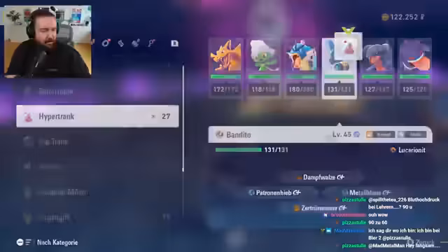 01:17:23Nach der Vorbereitung erkundet der Streamer Zone 14 und 15, fängt neue Pokémon und löst Sidequests wie das Tauschen von MPC offline. Es folgt ein finaler Mega-Entwicklungskampf, bei dem Strategien wie Schaufler-Attacken und Typ-Effektivität (Boden, Eis, Drache) entscheidend sind. Der Kampf wird mit viel Damage und Verwandlung der Pokémon gewonnen. Nach dem Sieg werden noch Schulden angesprochen, und der Stream endet mit Grind-Aktivitäten in der Umspannungszone.
