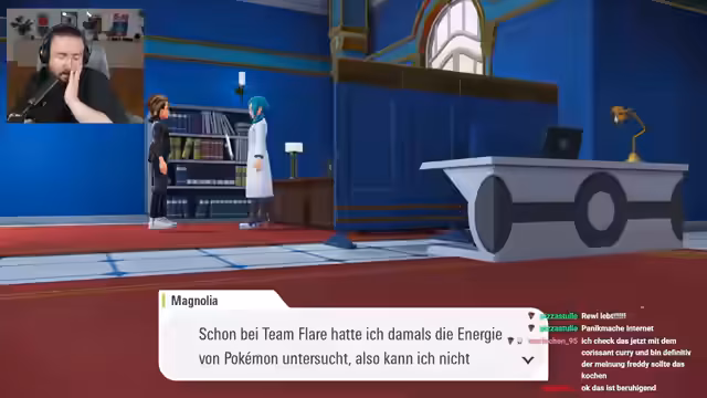 00:21:48Nach den Verhandlungen geht es zum Hotel, wo neue Megasteine gefunden werden. Der Streamer erkundet die Stadt, sucht nach versteckten Parcours und nutzt Dächer für Navigation. Ein Shiny-Hunting-Trick in Zone 3 wird erklärt: Durch ständiges Auf- und Absteigen einer Treppe resetet sich die Map, bis ein Shiny erscheint. Es folgt das Leveln der Pokémon, wobei XP durch Kämpfe gesammelt wird. Diskussionen über die Spielökonomie entstehen, etwa Megasteine nur durch Online-Kämpfe zu erhalten, was Kritik auslöst, da Nintendo Online benötigt wird.