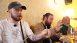 03:17:45Die Gruppe beginnt, die bestellten Gerichte zu probieren und teilt ihre Eindrücke. Besonders die Fettbämme, eine Art deftige Brotscheibe, und die Soljanka, eine säuerliche Suppe mit Wurst, werden als extrem lecker und intensiv im Geschmack beschrieben. Auch das Knoblauchbrot und die Beilagen wie der Krautsalat werden gelobt und als perfektes Soul-Food eingestuft.