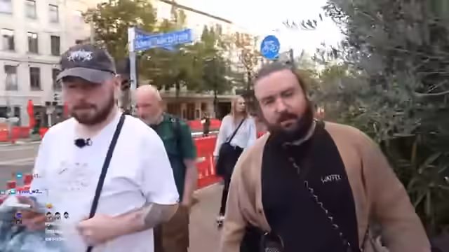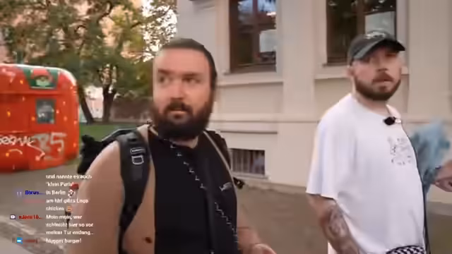 01:38:19Während der Pause im Späti kommt es zu einer ungewöhnlichen Situation, als eine Person ausserhalb des Ladens sehr verdächtigt wirkt und lange an den Türen herummanipuliert, was bei der Gruppe für Verunsorgung sorgt. Nach der Pause wird der Spaziergang durch die Strasse fortgesetzt und der Streamer beschreibt das Viertel als eine Mischung aus Kultur, Szene und entspanntem Flair.